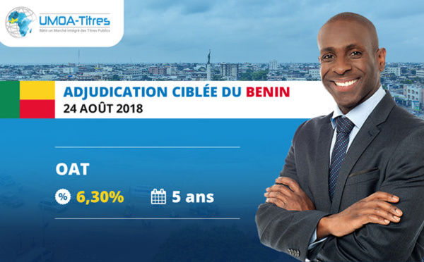 Le 24 août 2018, le Trésor Béninois lance une émission par adjudication ciblée d’Obligations Assimilables du Trésor portant sur montant de 50 milliards de FCFA et sur une durée de 5 ans, a annoncé...